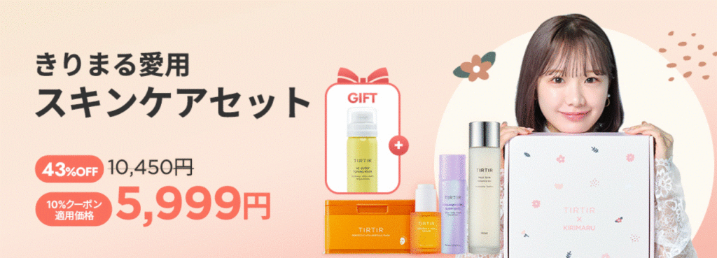TIRTIRの看板商品であるクッションファンデよりも人気だった商品があります。それは「人気クリエイターきりまるが直接選んだベストアイテムスキンケアセット」です。