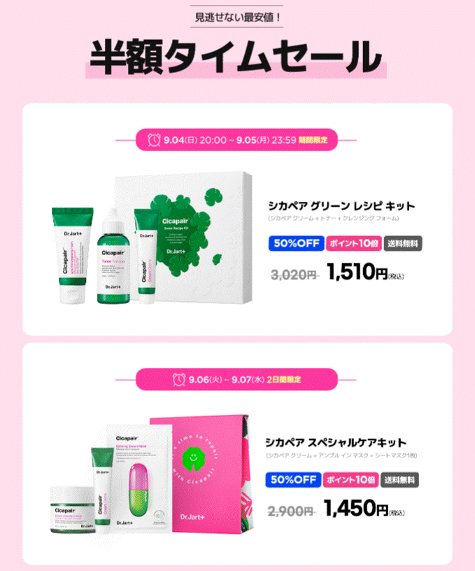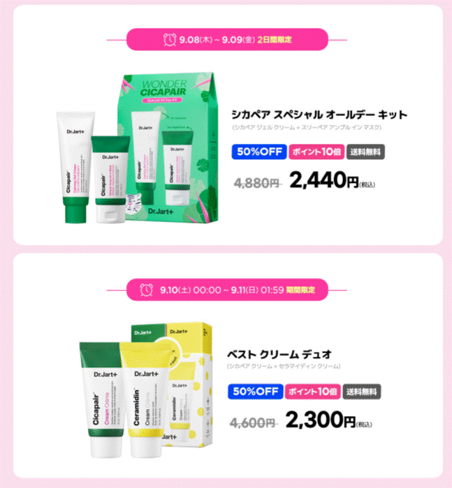 Dr.Jartの人気商品はタイムセール形式のものもありました。