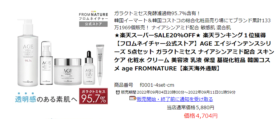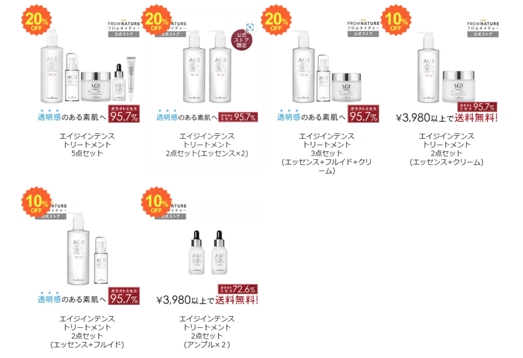 スキンケアのフルラインセットで人気だったのはフロムネイチャーです。配合成分があの高級化粧品「SK2」と同じといわれ、最近では実店舗でも見るようになりましたよね。