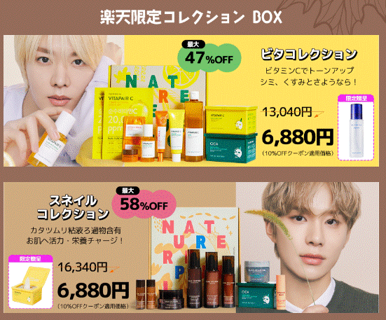 ネイチャーリパブリックはVT cosmeticsに次ぐ人気公式ショップでした。ネイチャーリパブリックの特徴は商品ラインナップが豊富で、シカだけでなく「ビタミン系」「カタツムリ系」などスキンケアの幅が広いことです。