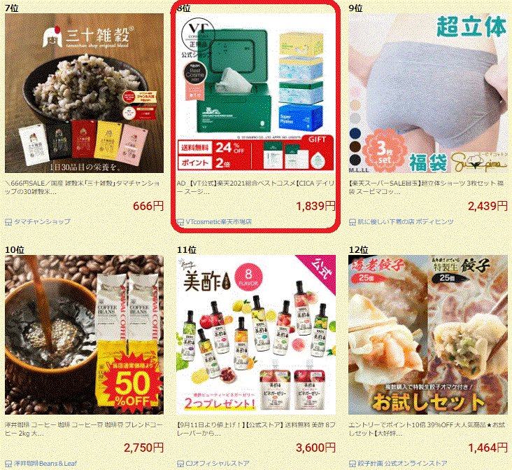 ↓↓VT cosmetics のショップ内でのランキングです