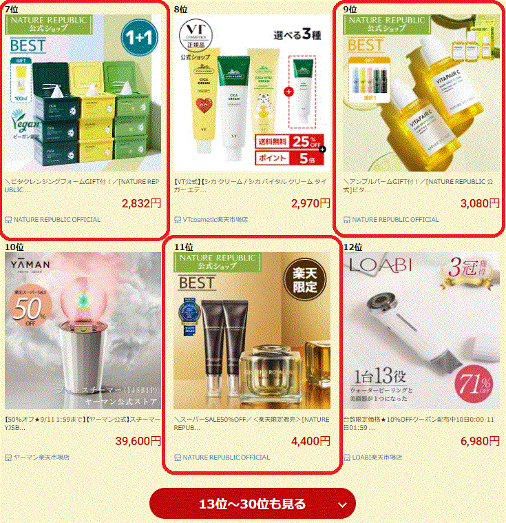 総合ランキングでもVT cosmeticsは上位でしたが、化粧品ランキングで見てみると、なんと上位4位まで独占という人気っぷり!